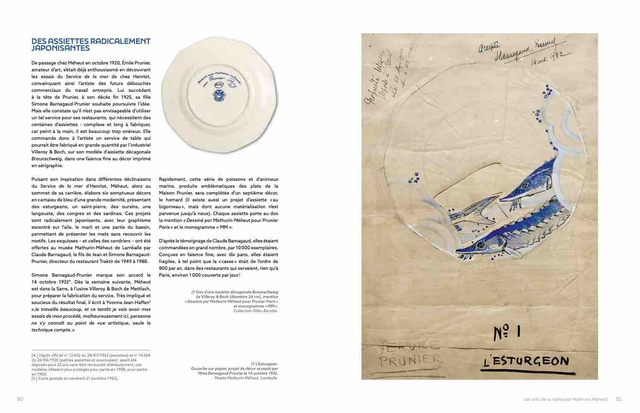 Émile Prunier, amateur d’art, s’était enthousiasmé en découvrant les essais du Service de la mer de chez Henriot. Lui succédant à la tête de Prunier, à son décès fin 1925, sa fille Simone Barnagaud-Prunier souhaite poursuivre l’idée. Elle commande à l’artiste un service de table chez Villeroy & Boch, sur son modèle d’assiette décagonale Braunschweig, dans une faïence fine au décor imprimé en sérigraphie.