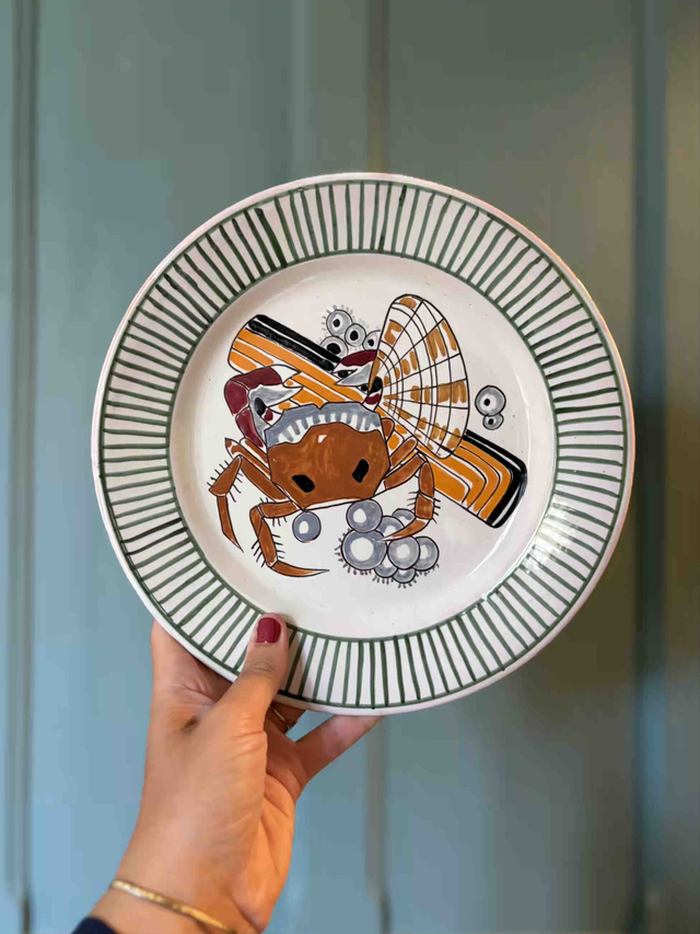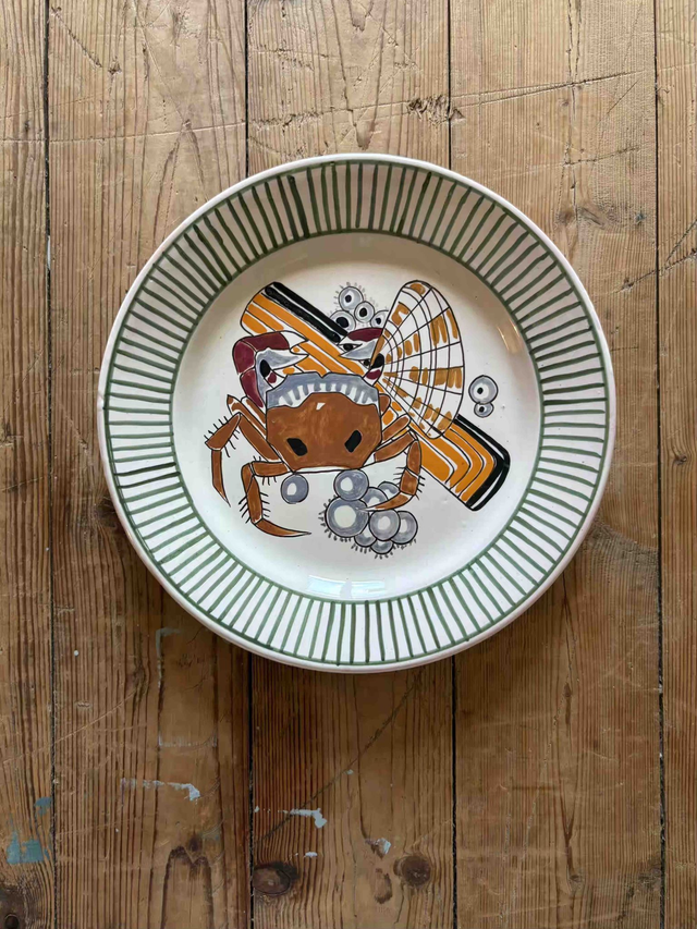 Mathurin Méheut x Henriot "Crabe fantôme, mactre et couteau"