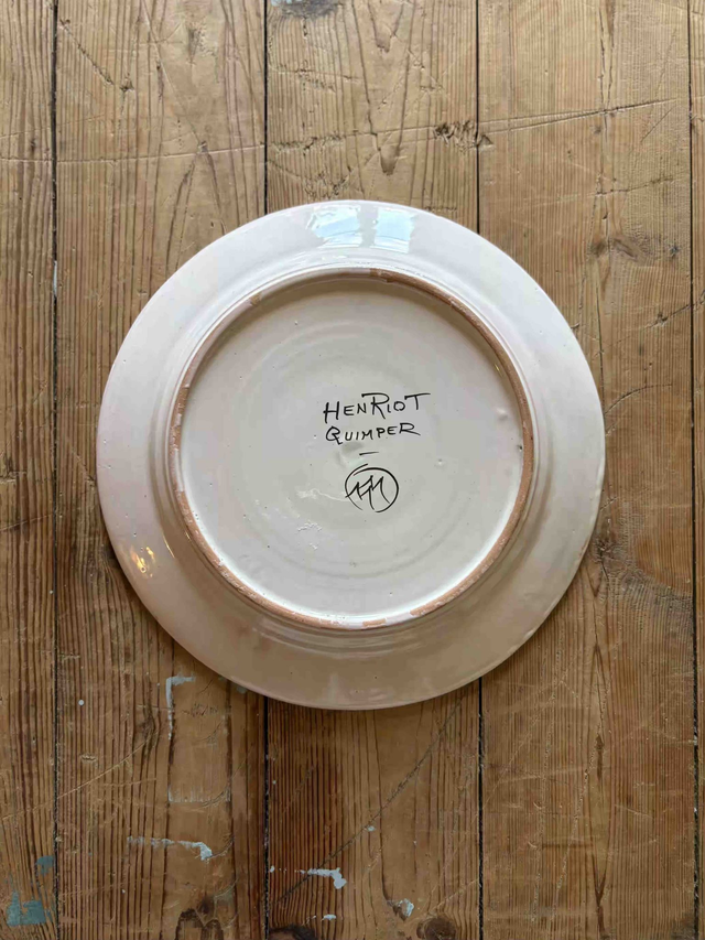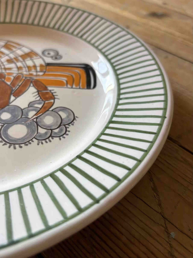 Exceptionnel ! Assiette dessinée en 1919 par Mathurin Méheut, peinte à la main par les "peinteurs" de la manufacture Henriot à Quimper. Faïence.