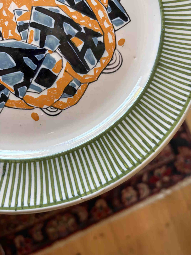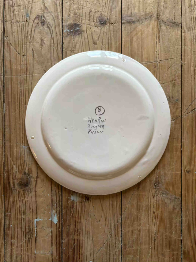 Exceptionnel. Assiette dessinée en 1919 par Mathurin Méheut, peinte à la main par les "peinteurs" de la manufacture Henriot à Quimper. Faïence.
